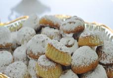 يترك الكعك ليبرد تماماً ثم يرش بالسكر البودرة ويُرص في طبق التقديم