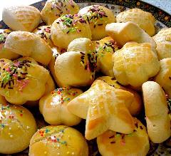 اطبعي العجينة بالطوابع حتى تحصلي على أشكال جميلة ضعيها في صينية و اطليها بصفار البيض ثم زينيها بحلوى ملونة و ضعيها في فرن 160درجة