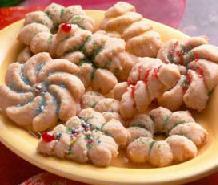 نضع العجينة في الجهاز الخاص بالبسكويت وتشكل منها أشكال حسب الرغبة