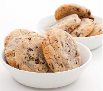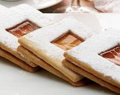 تذوب الشوكولا في المايكروويف ويغمس طرف من البسكويت في الشوكولا ويرش باللوز أو أي مكسرات أخرى وتترك لتجف الشوكولا ثم ترص في صينية التقديم