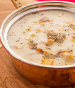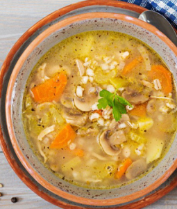سخني الحساء لبضع دقائق دون أن يغلي، ثم قدميه مزينًا بالبقدونس.