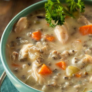 عندما تغلي خففي عليها النار وفي هذه الاثناء ضعي الزبده والزيت في مقلاه على النار وقلبي قطع الدجاج شوي وارفعيها وضعي البصل والثوم مكانها وقلبي حتى يذبل البصل ثم صبي عليه نص كوب ماء وخففي النار ودعيه دقيقتين كامله واخلطيه بالخلاط مع قليل من الماء حتى يصبح ناعم ثم ضعيه هو والدجاج فوق الشوربه واتركيها تطبخ على نار هادئه لمدة ½ ساعه وضيفي لها الكريمه او القشطه وقلبيها جيدا