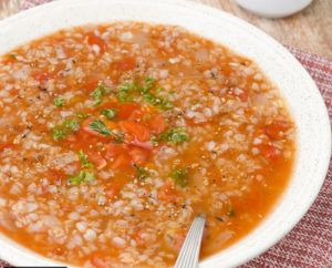 وعندما تغلي بدقيقتين أطفيء عليها النار وضيفي لها الكزبره والبصل الاخضر وتقدم مع الليمون