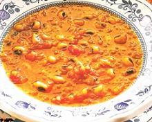 يوضع العدس مع اللوبياء ، البصل ، الفلفل ، الكركم وكوبان من الماء في قدر على النار حتى يغلي ، ثم تخفف النار وتترك لمدة 40 دقيقة أو حتى ينضج العدس واللوبياء تماماً