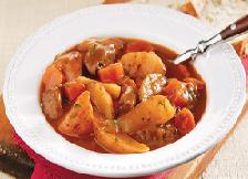 اخرجي اللحم من الفرن ثم ضعي عليه البطاطا ، والمتبقي من الماء والدقيق وقلّبي جيدا ، ثم أضيفي المتبقي من المرق ، ضعي الإناء على النار حتى يكتمل النضج