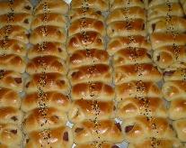 يضاف الملح وكمية كافية من الماء للحصول على عجينة متوسطة الليونة تقسم العجينة إلى قطع صغيرة، وزن كل منها 70 غراماً تقريباً تغطى قطع العجين وتترك جانباً ساعة كاملة لترتاح