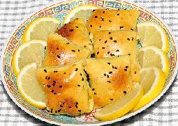 ومن ثم نفرد كل قطعة عجين بحجم صينية ونضيف مقداراً من الحشوة على الأطراف ثم نلف العجين على شكل سيجارة ، ثم نقطع البرك إلى شرائح بالسماكة التي نرغب