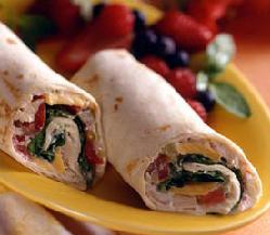 يفرش الخبز بعد تسخينه قليلا ويوضع عليه الدجاج والبندورة والجبن والخس ويلف ويقدم