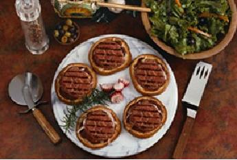 يدهن الوجه بصلصة البيتزا. ثم يوضع عليه البورجر والجبن كرفت وحلقة بصل وحلقة طماطم الموزاريللا