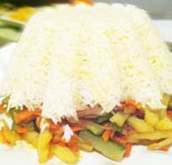 تقطع الجبنة العكاوي والجبنة المجدولة أو تبشر على نحو خشن ثم تنقع في الماء البارد لمدة نصف ساعة حتى يتم التخلص من معظم الملح الموجود في الجبنة