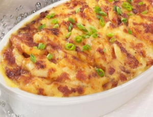 نضيف إلى الخليط البيض المخفوق ثم الجبن المبشور بدون تحريك الخليط ونتركها على النار حتى يستوي الكل ثم ادخليها للفرن لتتحمر قبل تقديمها