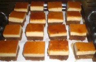 تسكب طبقة أخرى من الكاسترد وتغطى بـ 8 قطع أخرى من البسكويت. تكرر العملية نفسها مع طبقة ثالثة من الكاسترد و8 قطع من البسكويت. تسكب أخيراً الكمية الباقية من الكاسترد